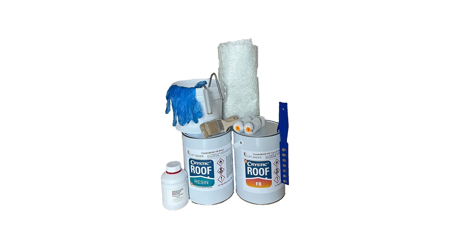 Supplied with everything needed to cover the area required with 1 layer of 600gm² glass fibre mat and 1 layer of CrysticROOF Fire Rated Topcoat. The special Fire Rated topcoat included is specifically designed to meet British and European fire standards. The CrysticROOF System is Fire Rated and Certification is available on request. Certification is normally needed for Building Control and House Packs when buying and selling property.