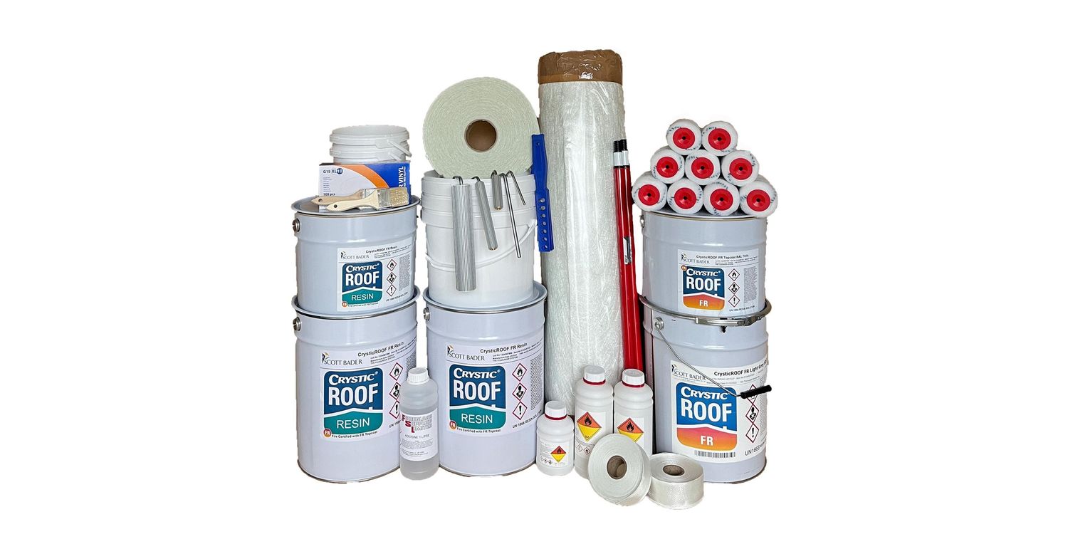 Supplied with everything needed to cover the area required with 1 layer of 600gm² glass fibre mat and 1 layer of CrysticROOF Fire Rated Topcoat. The special Fire Rated topcoat included is specifically designed to meet British and European fire standards. The CrysticROOF System is Fire Rated and Certification is available on request. Certification is normally needed for Building Control and House Packs when buying and selling property.