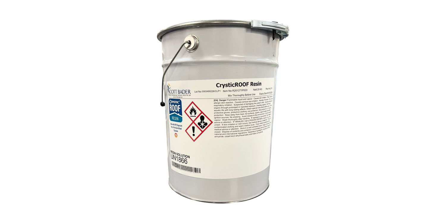 Scott Bader CrysticROOF Roofing Resin is a specialist, high-performance resin developed specifically for professional roofing applications. Engineered to deliver reliability, ease of use and long-term protection, it is trusted by installers for creating durable, weather-resistant flat and pitched roofing systems.