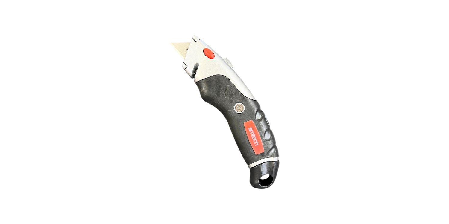 Retractable knife with a soft, non-slip grip for added precision and safety, and a strong aluminium body. Retractable for safe storage and perfect for DIY, craft or everyday use. Also features a blade lock for added safety.