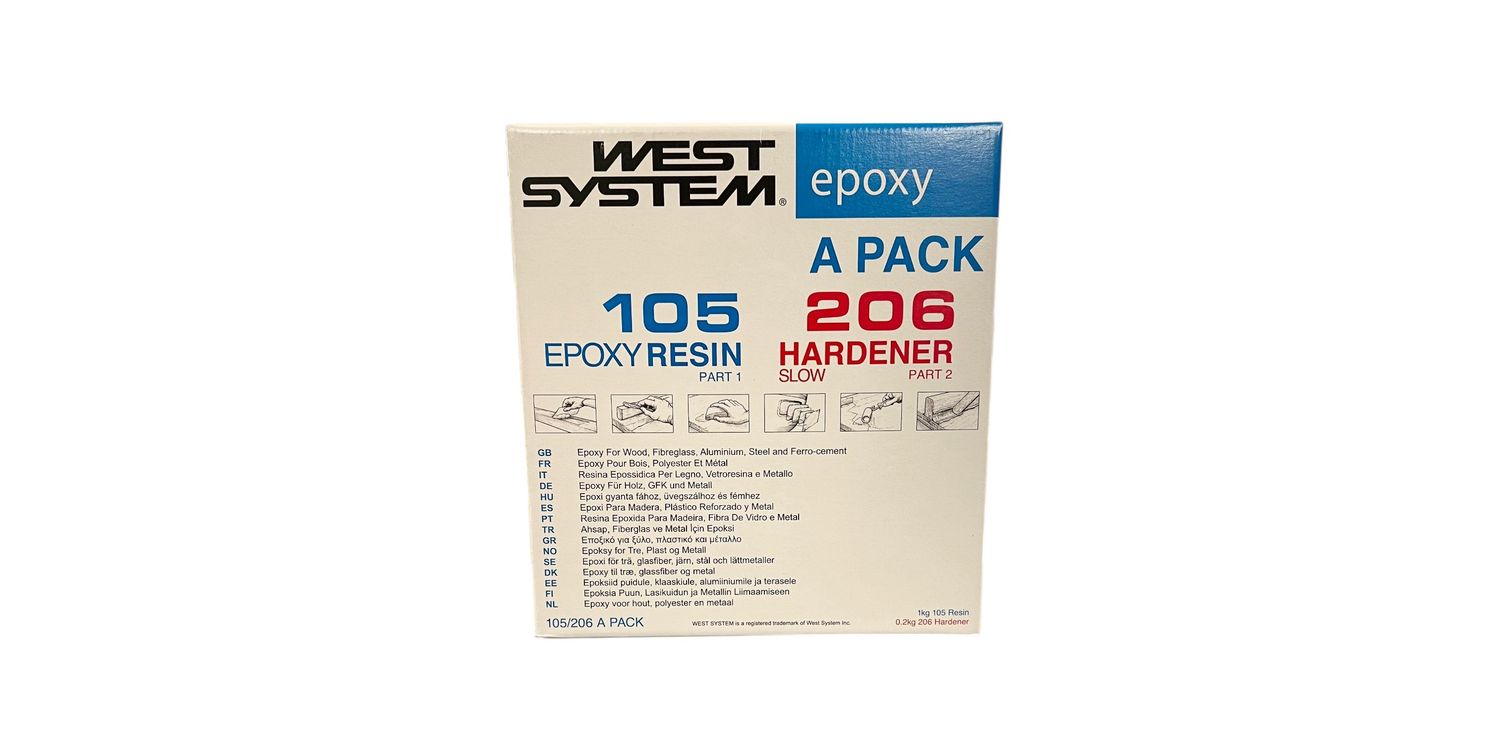 The West System A Pack With 105 Epoxy Resin & 206 Slow Hardener is a reliable, professional-grade, 2-part epoxy kit that is designed to create rigid, high-strength, moisture-resistant bonds in larger projects such as boat building, repairs, filleting and fairing. It contains 1kg of West System 105 Epoxy Resin and 200g of 206 Slow Curing Hardener to provide a reliable solution for a wide range of marine and DIY applications.