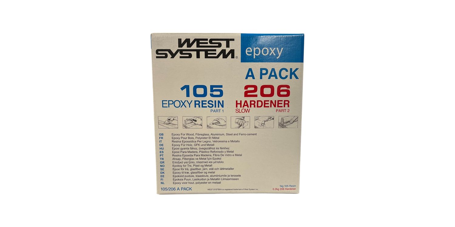 The West System A Pack With 105 Epoxy Resin & 206 Slow Hardener is a reliable, professional-grade, 2-part epoxy kit that is designed to create rigid, high-strength, moisture-resistant bonds in larger projects such as boat building, repairs, filleting and fairing. It contains 1kg of West System 105 Epoxy Resin and 200g of 206 Slow Curing Hardener to provide a reliable solution for a wide range of marine and DIY applications.